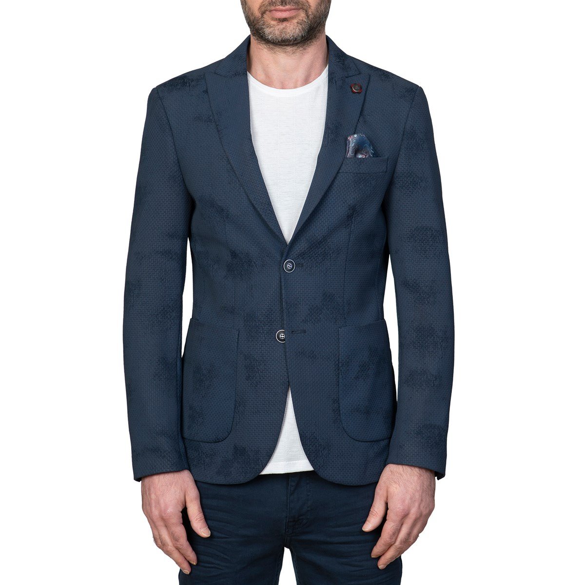 White Stone Snake Ceket 6 Drop Slim Fit Desenli Mavi (WCK20149)