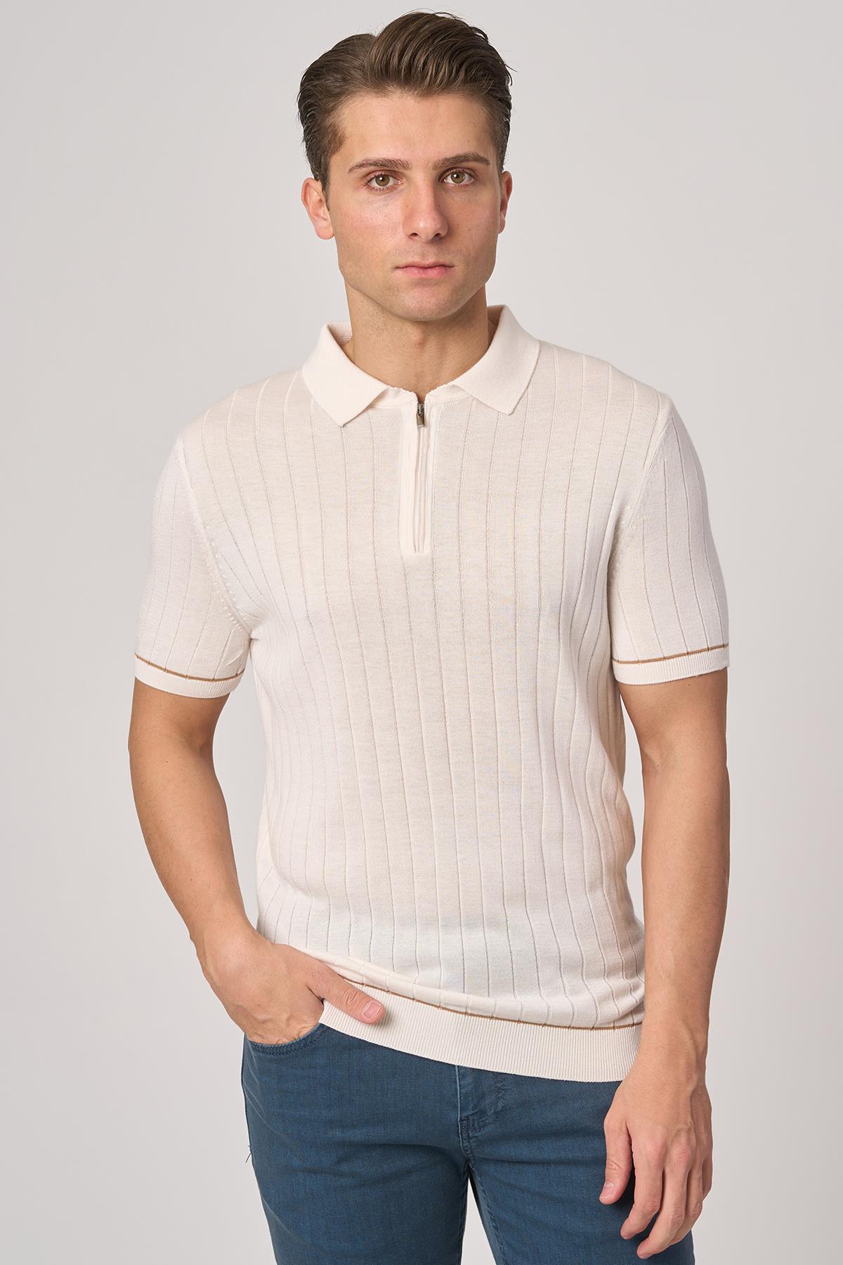 White StoneWHİTE STONE  2025-Y  25055  POLA YAKA FERMUARLI TSHIRT    EKRU