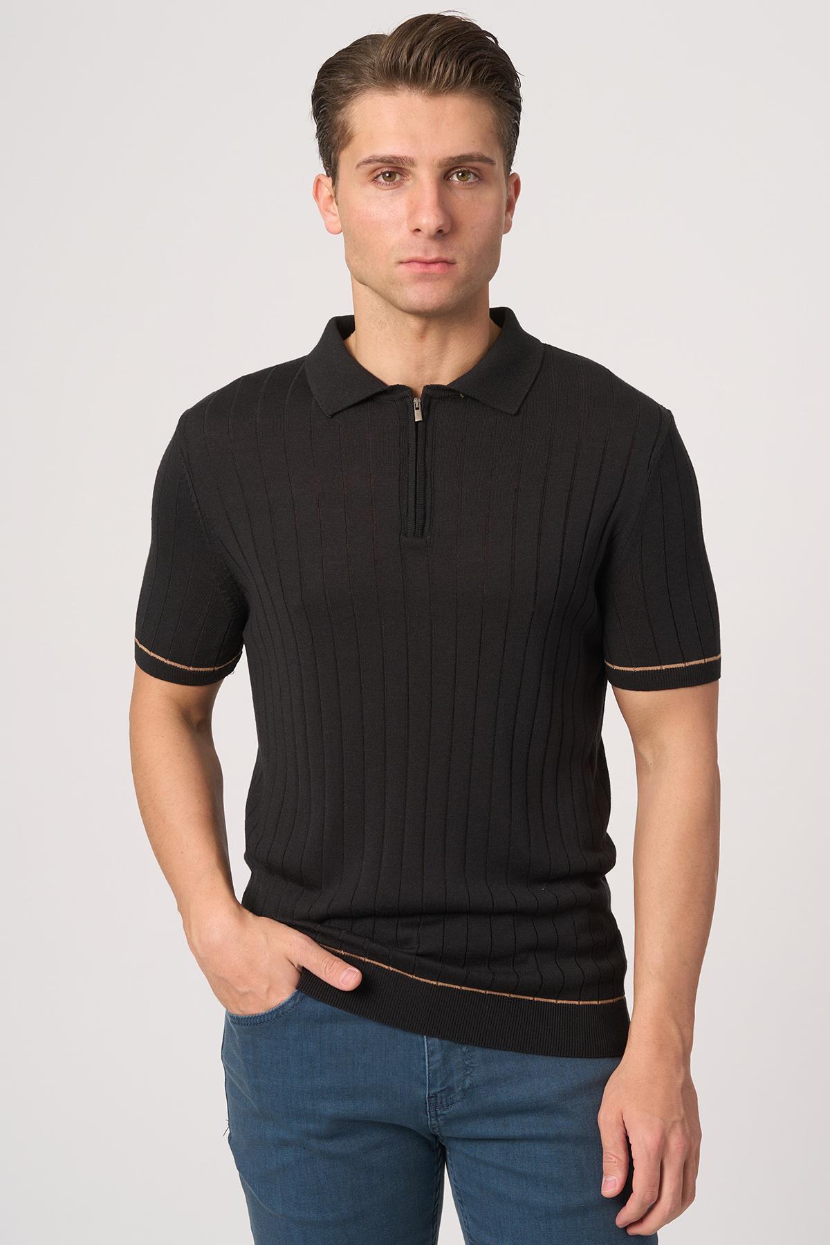 WHİTE STONE 2025-Y 25055 POLA YAKA FERMUARLI TSHIRT SİYAH (WTŞR25Y25055)